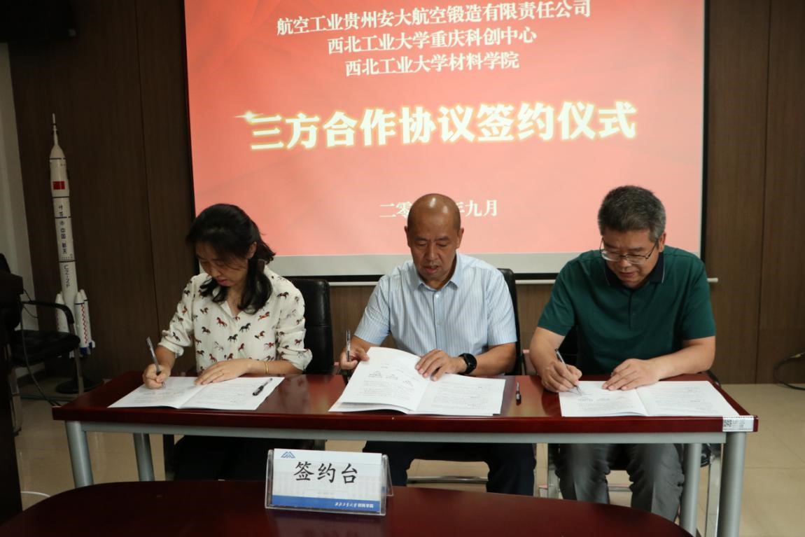与贵州安大航空锻造有限责任公司(以下简称“贵州安大”)、重庆科创中心三方合作协议签约仪式在西工大友谊校区公字楼会议室成功举行。贵州安大党委书记、董事长冀胜利、中文无码