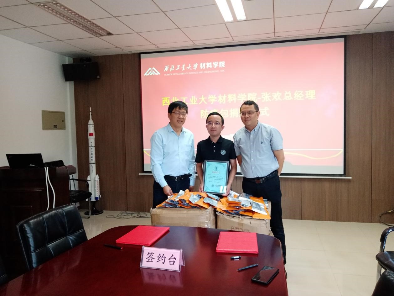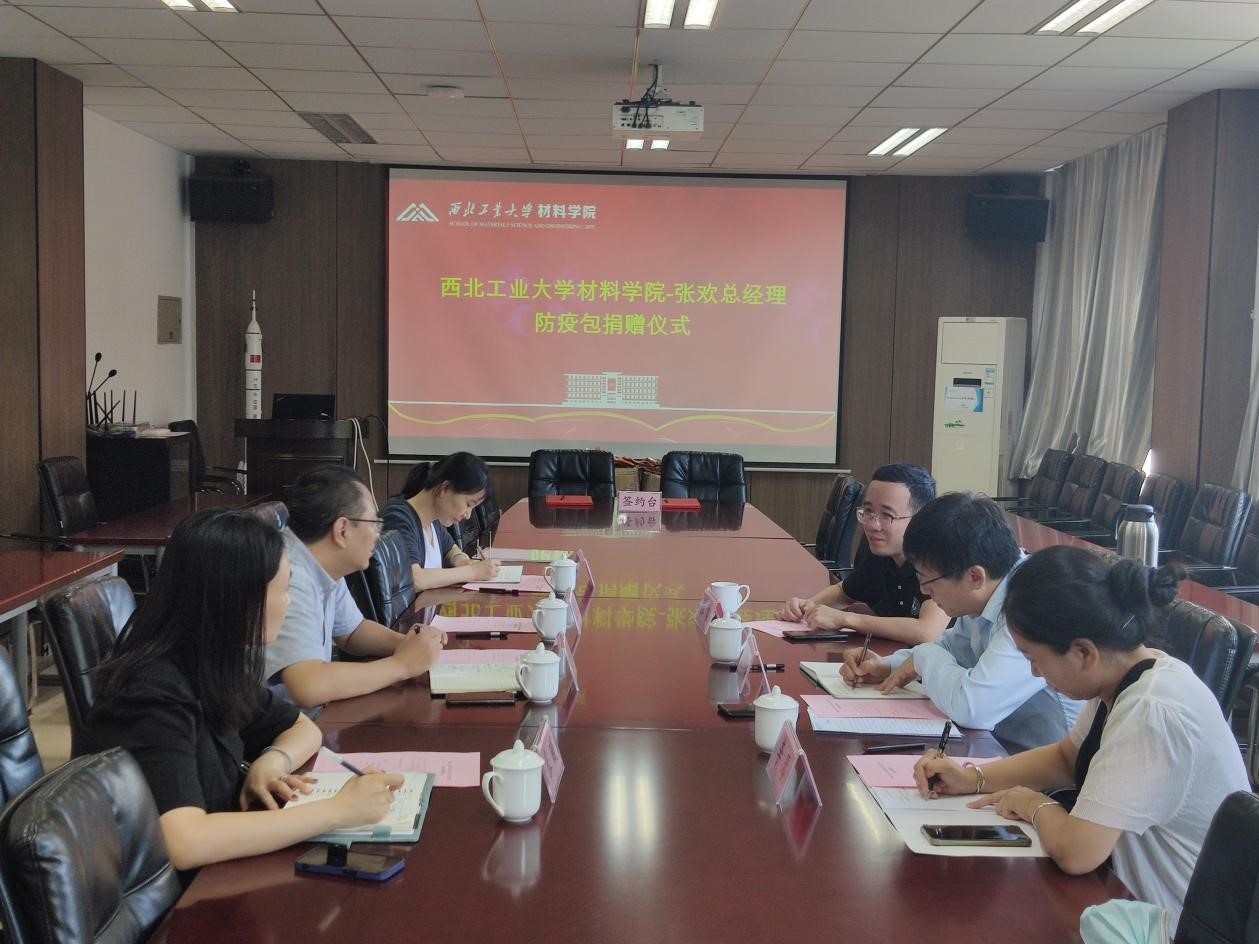 与中陕核生态环境江苏分公司张欢总经理在公字楼322会议室顺利举行了防疫包捐赠仪式。学校教育基金会秘书长张英群、中文无码