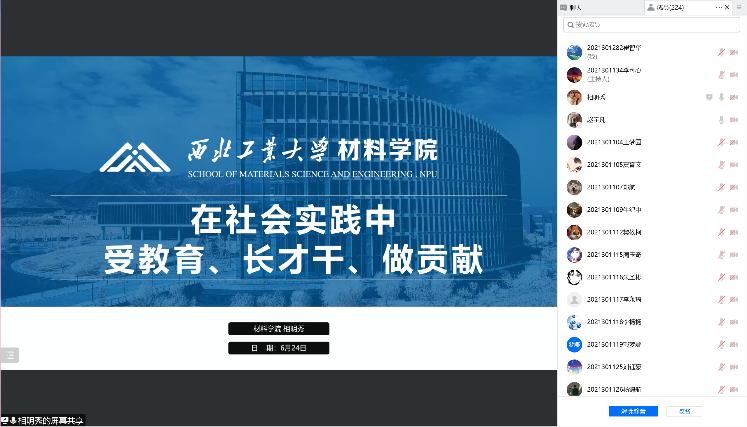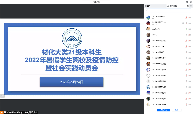 2022年6月24日星期五晚间,材化大类21级本科通过在线会议形式安排部署了暑假学生离校与疫情防相关工作,并进行了社会实践活动的积极动员。