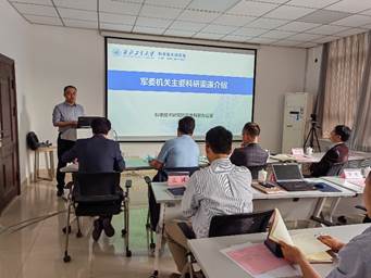 邀请校科学技术研究院刘佩进副院长、军工科研部王少华部长、军工部装备办主任段元欣及国防办主任王谦来学院做关于军工科研项目申报渠道专题讲座。学院党委书记付前刚、副院长苏海军、副书记罗皎,特邀专家罗发教授、刘永胜教授以及学院部分教师参加了本次宣讲会。会议由苏海军主持。