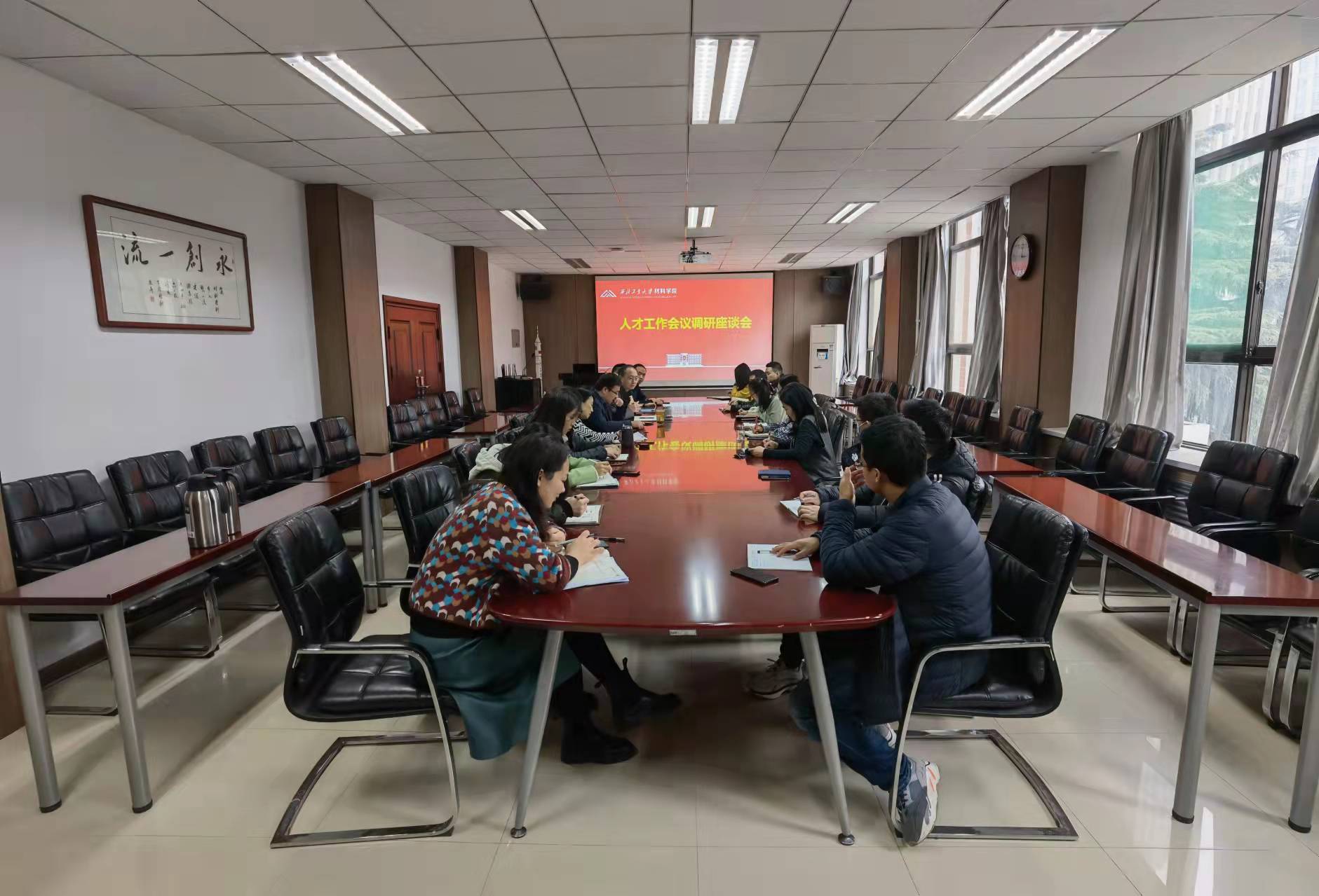 在公字楼322会议室召开学院人才工作调研座谈会,重点围绕师德师风、思政队伍建设及实践能力提升等专题进行研讨,中文无码