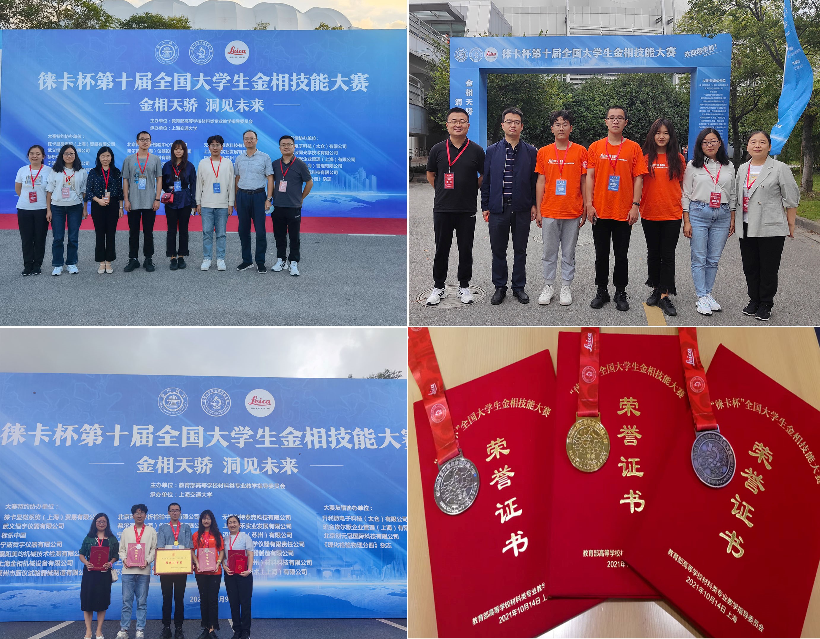 荣获团队二等奖。傅茂森、姚西媛和夏委委荣获优秀指导教师。为感谢退休教师陈彦对全国大学生金相大赛的特别贡献,大赛组委会特为陈彦老师颁发二等荣誉勋章。