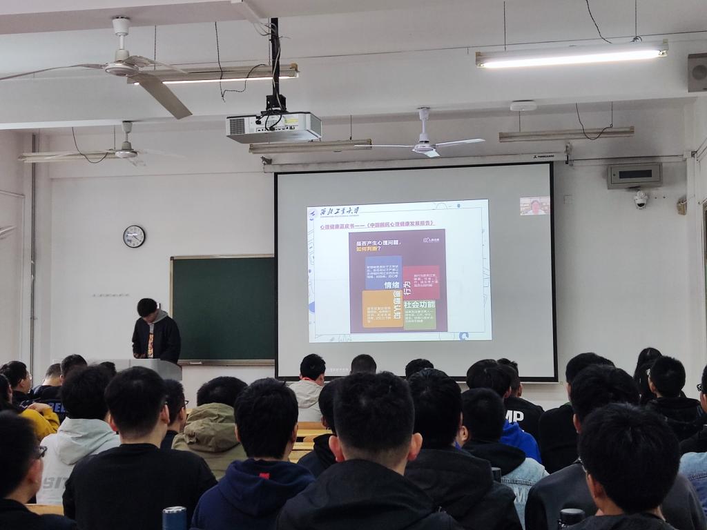 首先,胡纯老师针对同学们已经完成的SCL-90和卡特尔16种人格测试结果进行了详细的分析,帮助同学们正确认识到自己的心理健康状态,并提供了学校心理咨询预约的方式,为同学们提供心理帮助。然后,胡老师以自身为例,叙述了研究生期间会遇到的心理压力,教导同学们正确的看待心理健康问题,培养积极健康的心态。最后,胡老师提出了几种常见的心理问题以及自我调节方法。通过这次讲座,使得研究生新生正确认识自己的心理问题,缓解心理压力,培养积极健康的心态,也使得研究生新生调整心理状态,明确生活方向,提高自我关爱和自我心理调节的能力。