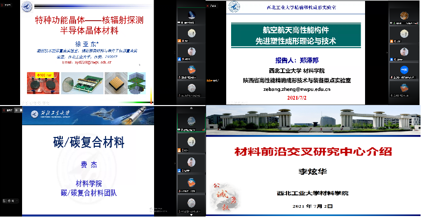 本次暑期学校共安排4场学术讲座和4场专业系组织的座谈会。学术讲座环节由李炫华教授、费杰教授、徐亚东教授、和郑泽邦教授分别围绕“材料前沿交叉中心介绍”“高性能金属材料的增材制造”“特种功能晶体——核辐射探测半导体晶体材料”和航空航天高性能构件先进塑型成形理论与技术”等题目展开了内容丰富的宣讲,师生双方通过屏幕进行了精彩热烈的讨论,学生们收获颇丰。