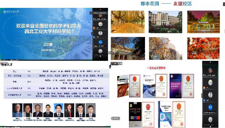 专业系组织的座谈会安排了由名师牵头的师生见面会。学生们根据报考的专业方向进入各系腾讯会议分会场,材料学系主任高峰教授、材料成形及控制系主任樊晓光教授、复合材料系主任张程煜教授、材料前沿交叉中心主任谢科予教授分别介绍了本学科的整体情况,介万奇教授、郭喜平教授、高峰教授、卢艳丽教授等参加了座谈会。学生通过自由提问,加深了对研究方向的了解。