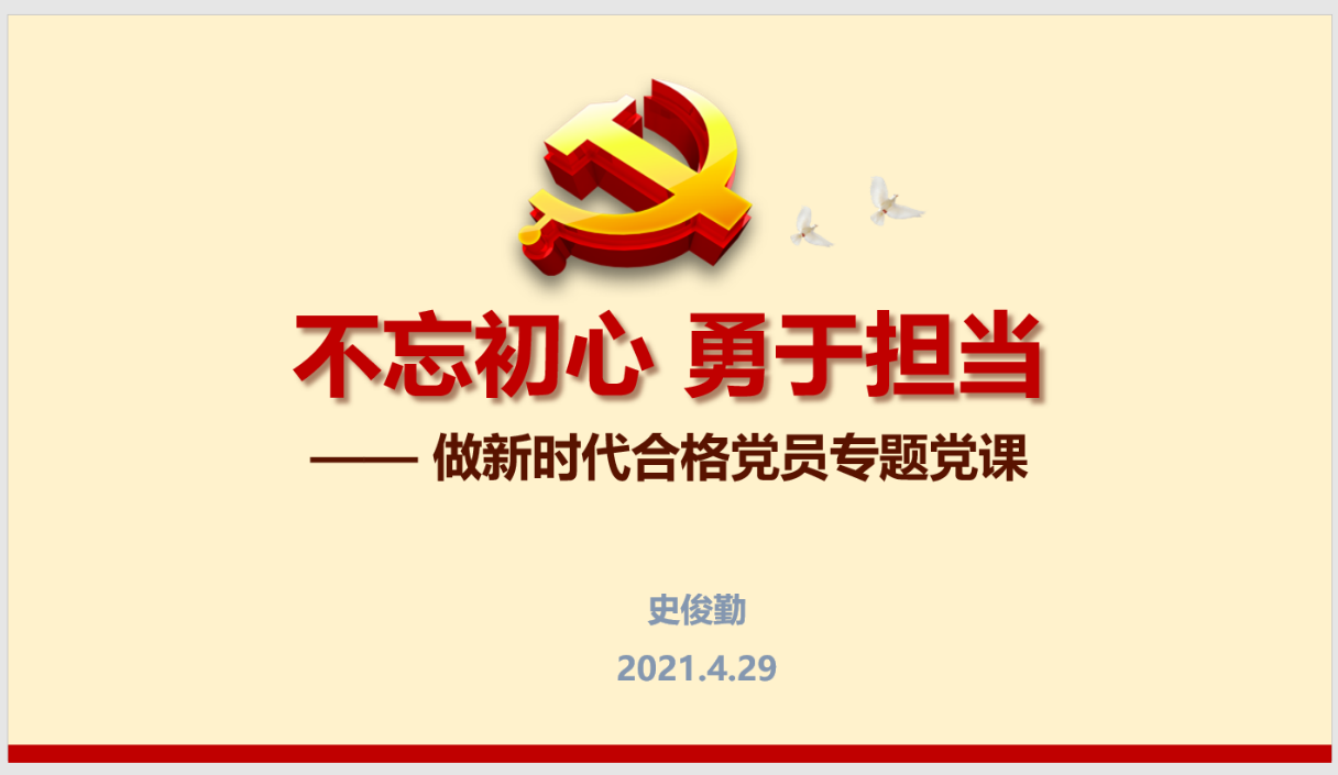 摩擦润滑研究生党支部于2021年4月29日晚在公字楼334召开支部专题党课,邀请学院辅导员史俊勤老师讲授“不忘初心,勇于担当——做新时代合格党员”专题党课,支部党员、预备党员、发展对象、积极分子共40人现场参加学习。