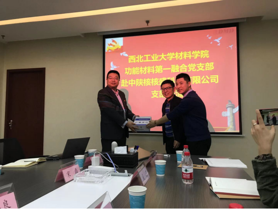 师生融合党支部组织育人效果,丰富党支部“党建+”活动内容,充分发挥党支部战斗堡垒作用,2020年12月11日下午,功能材料第一师生融合党支部23名党员赴西交产业园与中共中陕核核盛科技有限公司党支部开展校企联合党日活动,企业支部书记、执行董事许浒,支部委员、总经理张鹏等21人参加了交流活动。
