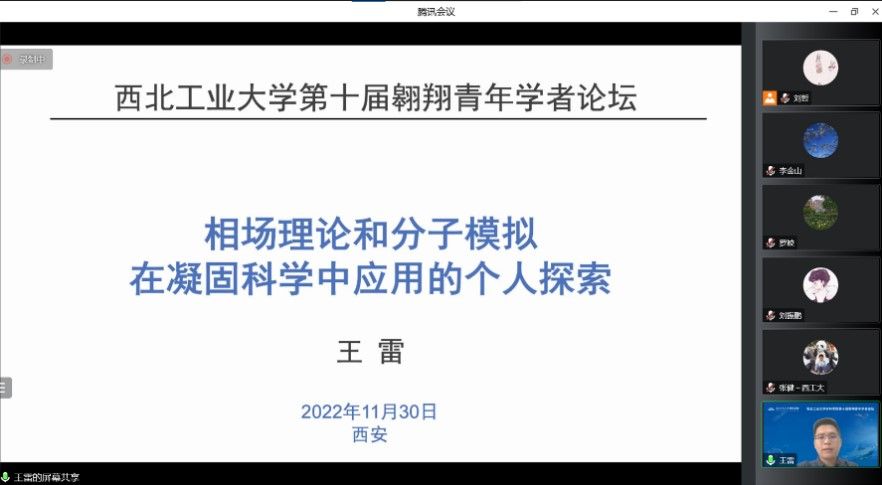 》和《相场理论和分子模拟在凝固科学中应用的个人探索》专题报告,详细介绍了相关学科研究进展、教书育人经验及个人成长发展心得体会。
