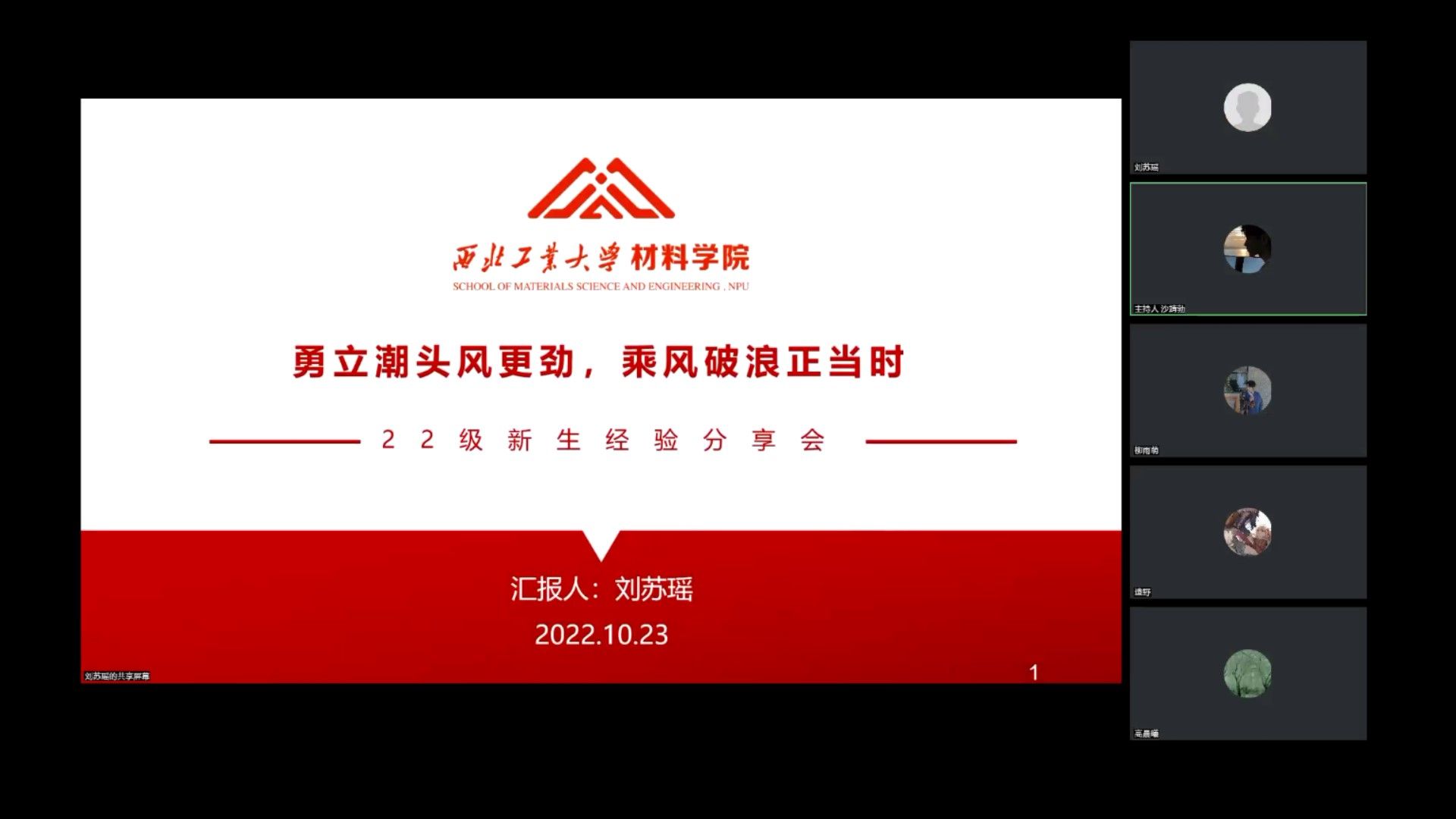 学生会邀请到柳雨萌、刘苏瑶、许晨涛、韩显烨四位高年级本科生在线上分享了大学学习、学生工作、竞赛和科研等方面的经验,分享会由沙靖勃主持,2022级全体本科生参会。