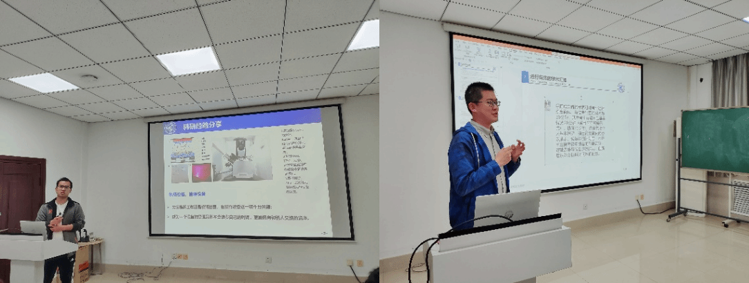 毕业生罗大微从文献研读、笔记整理、科技论文写作心得等方面介绍了在课题研究过程中的注意事项,并就科研时间规划、科技论文投稿等给出了个人建议。毕业生徐金瀚于今年成功考取西安交通大学博士研究生,他从考博院校选择、材料准备等方面做了详细介绍,并鼓励有考博意向的学弟学妹早做规划,坚定信心,保持良好的心态。