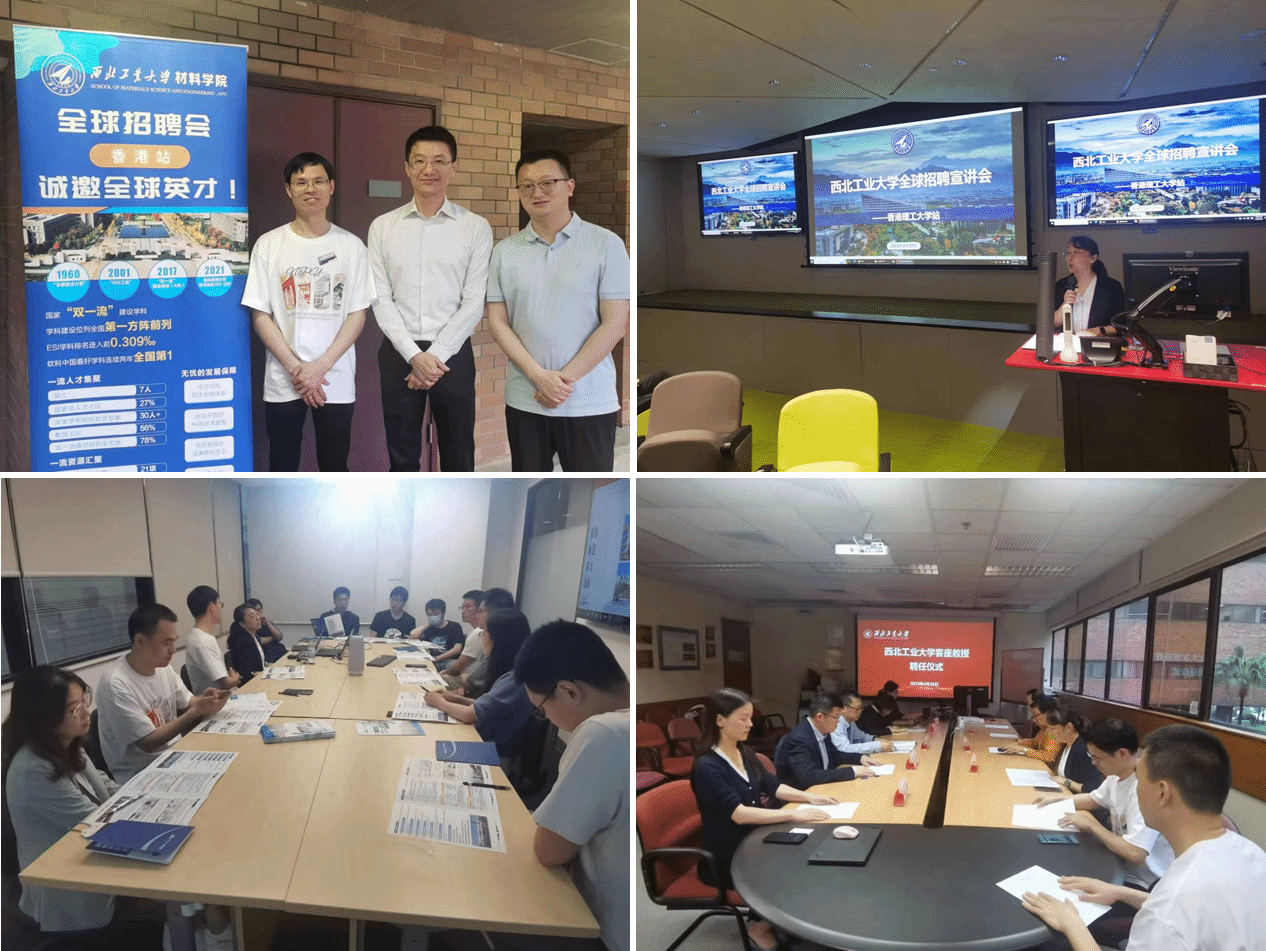 4月19日上午,代表团在香港城市大学组织了招聘宣讲会,向参会学者介绍了学校、学院和学科发展及相关人才引进政策,与参会学者进行热烈交流。代表团拜访了香港城市大学C.T. Liu院士、材料科学与工程系系主任Zeng Xiaochen院士、Zhu Yuntian教授、Yang Tao助理教授、Ma Xiaolong助理教授,并围绕科研合作、人才引进、师生互访等进行了全面的交流。