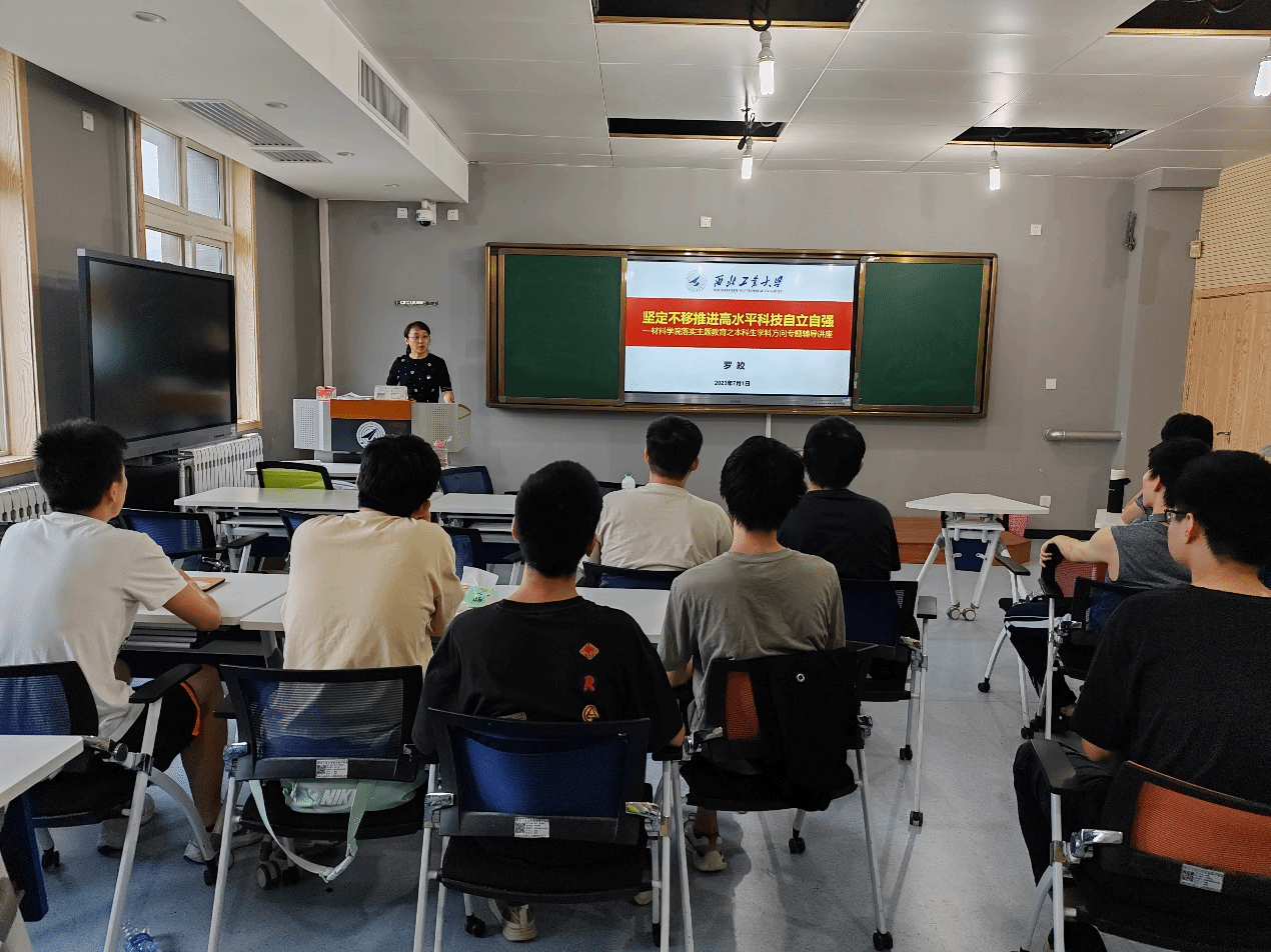 党委副书记罗皎教授在长安校区教东B座511为DL032105班本科生作了“坚定不移推进高水平科技自立自强”的主题党课和“航空航天用轻量化构件近净塑性成形与组织调控研究”的学科方向主题讲座,讲座由DL032105本科生班主任李宏副研究员主持。