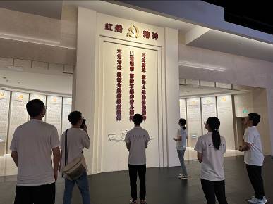 实践队首先走进百年前革命红船的启航圣地、党的根脉之地——嘉兴南湖,瞻仰红船,重温革命岁月,感悟“红船精神”,汲取奋进力量。随后实践团走入南湖革命纪念馆,场馆以中国革命为主题,以党的发展历程为脉络,全面展现百年来中国共产党带领全国人民取得民族解放、国家独立、人民富裕的建设奋斗史。