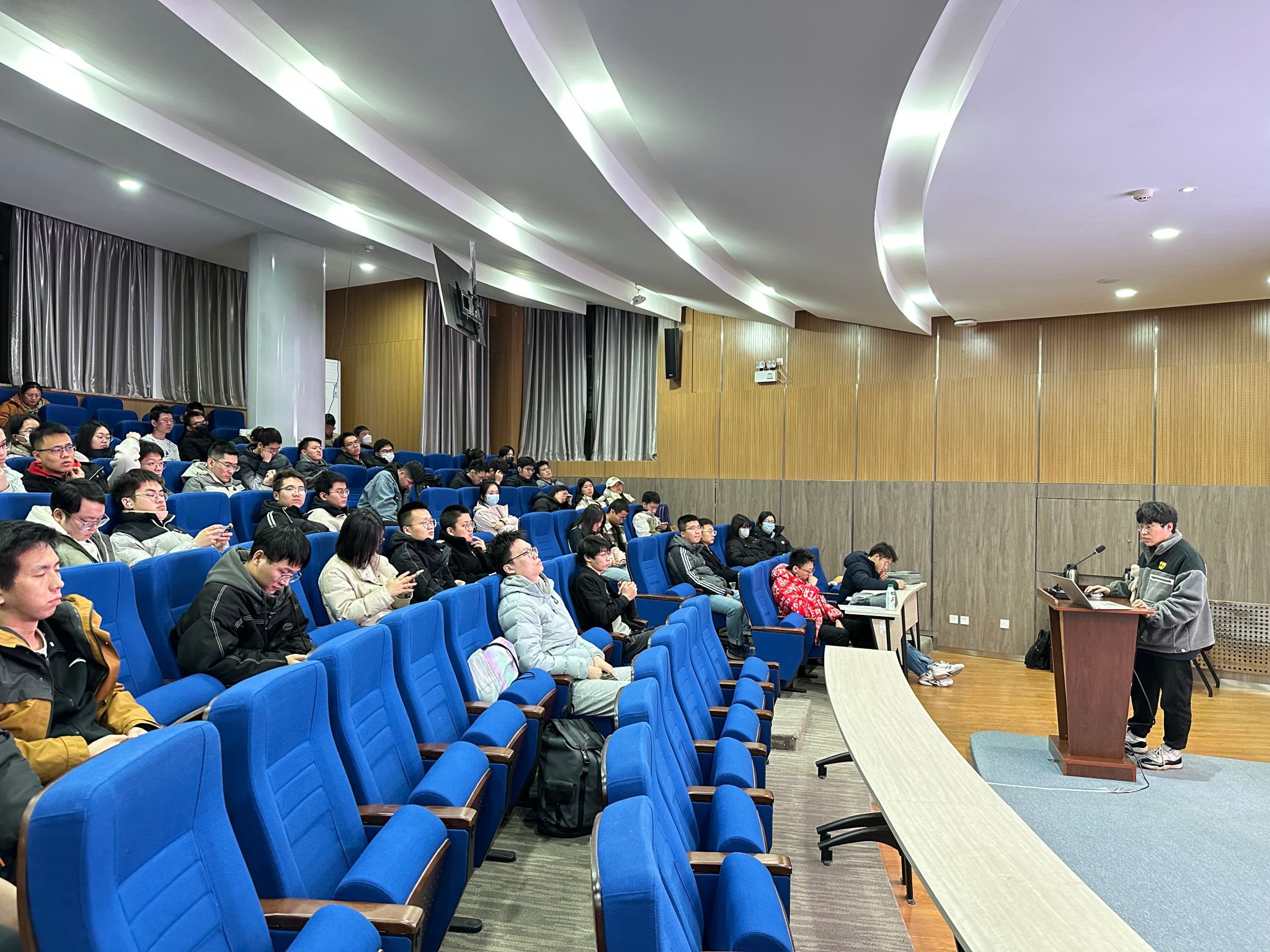 研究生会在东馆C-205报告厅举办了奖助政策解读与经验分享会,2023 级新生和部分高年级学生参会。会议邀请了学院负责奖助学金评定的兼职辅导员任斌进行学院及学校奖助学金政策解读,同时邀请了2021级博士研究生孔竟安进行了经验分享。