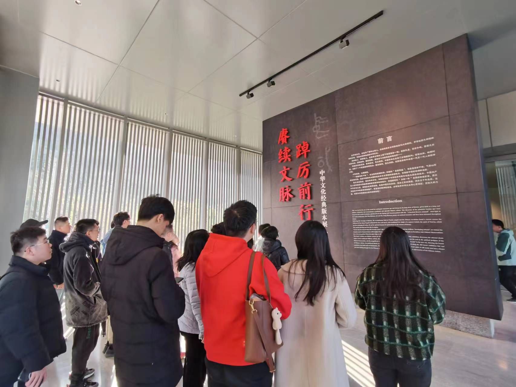 最后一站党员同志前往西安国家版本馆。版本馆主要承担中华文化版本典藏、展示、研究与交流的功能,将载有中华文明印记和地方特色印记的各类版本纳入其中,是独具特色的中华版本资源集聚中心、西部区域中心和地方特色版本中心。活动期间,全体人员详细了解了中国国家版本馆“一总三分”的总体布局及西安分馆的规划设计、建筑特点、收藏版本等情况,参观了核心功能区——长90米、高20米的四层巨型通顶书墙,“赓续文脉 踔厉前行—中华文化经典版本展(西部篇)”和“楮墨遗珍 万里同风——丝绸之路版本展”两个特色展厅。