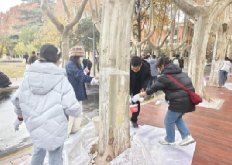 入冬过后,天气愈加冷冽,但在活动现场,支部成员热情高涨,分工明确,配合默契,不怕脏,不怕累。在大家的不懈努力下,不仅成功替树木挂上了名牌,还给树木换上了御冬的新衣,极大增强了树木抗旱、抗冻、防虫能力,确保了树木温暖安全过冬,相信来年树木会迸发出更为旺盛的生机。
