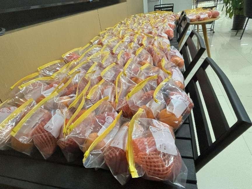 学院为考研学子准备“加油包”,内含寓意一战“橙”硕的橙子和“苹”稳上岸的苹果。橙子鲜艳的色彩和清甜的味道承载着前行的勇气和信心;苹果的坚实和稳重代表着学子们在备战考研中的稳定和持久努力。希望考研学子们怀着必胜的信念,“苹”稳上岸、一战“橙”硕。