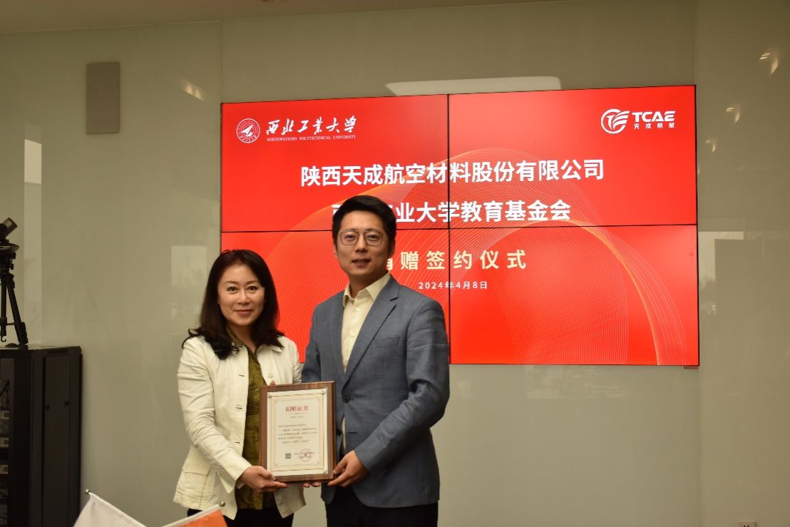 和陕西天成航空材料有限公司举行技术交流会暨奖学金捐赠仪式。天成航材总经理车伟、各部门技术骨干,学校对外联络办公室副主任徐伟侠,中文无码