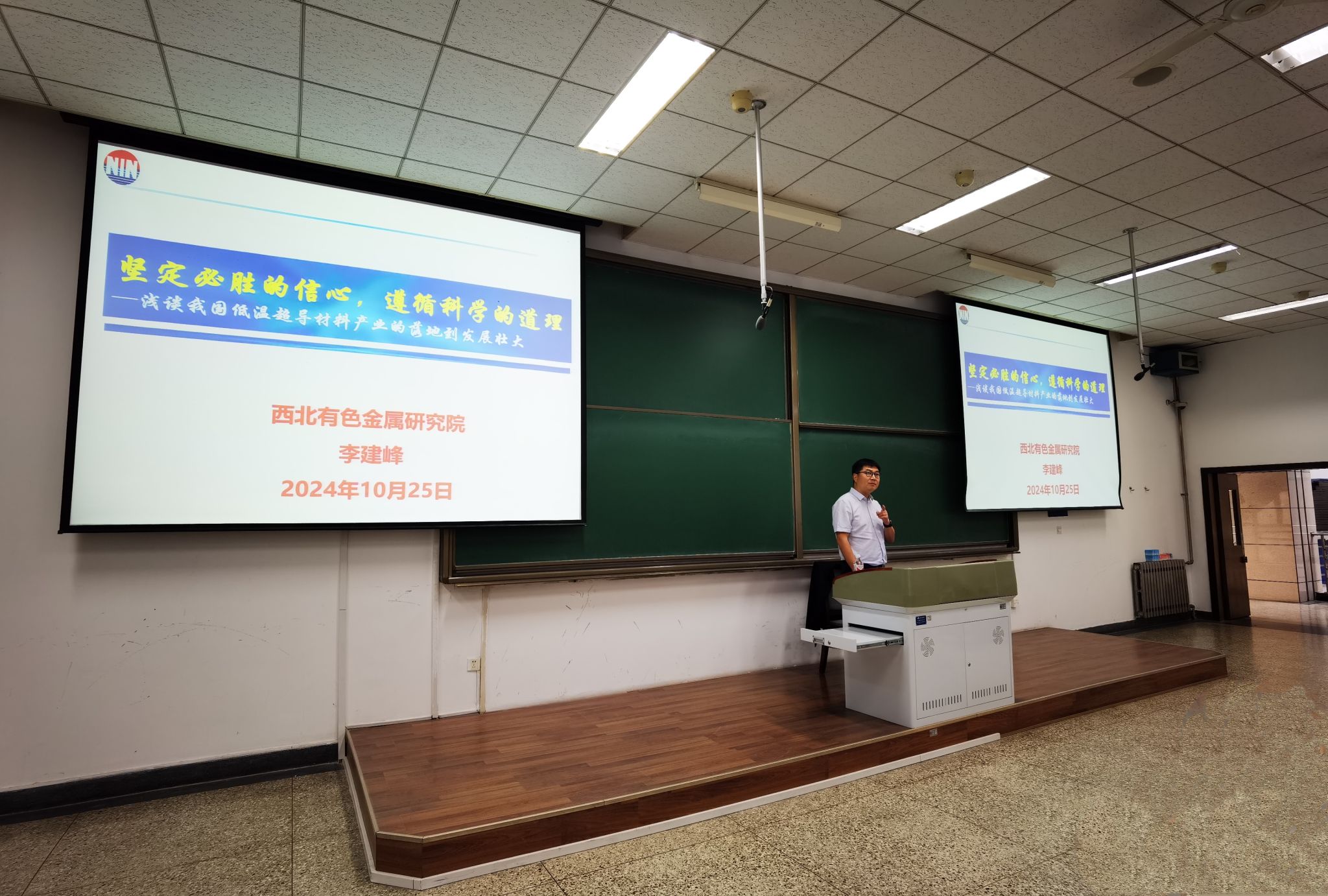 通过回顾超导材料产业从艰难落地到发展壮大的艰辛历程,李建峰总结了超导人敢为人先的探索和创造精神。他勉励同学们在现在的学习和将来的工作生活中,都能以这种勇敢拼搏、不惧险阻的意志力面对挑战,尤其是西工大学子,在面临重大战略任务时,更要勇于承担,为国铸剑!面对取得的丰硕成果,他告诉同学们,只要肯尽心尽力去做一件事,总会得到想要的结果。“勤学习,肯钻研,练就过硬本领,才能担重任;立大志,明大德,心系国之大者,方可成大才!”最后,李建峰向同学们分享了习近平总书记关于青年人成长成才的重要讲话,鼓励大家认真学习,矢志奋斗,努力成长为“专业精、系统强、重实践、能担当”的“总师型”人才,为我国材料科学和制造业高质量发展做出青年一代的贡献。