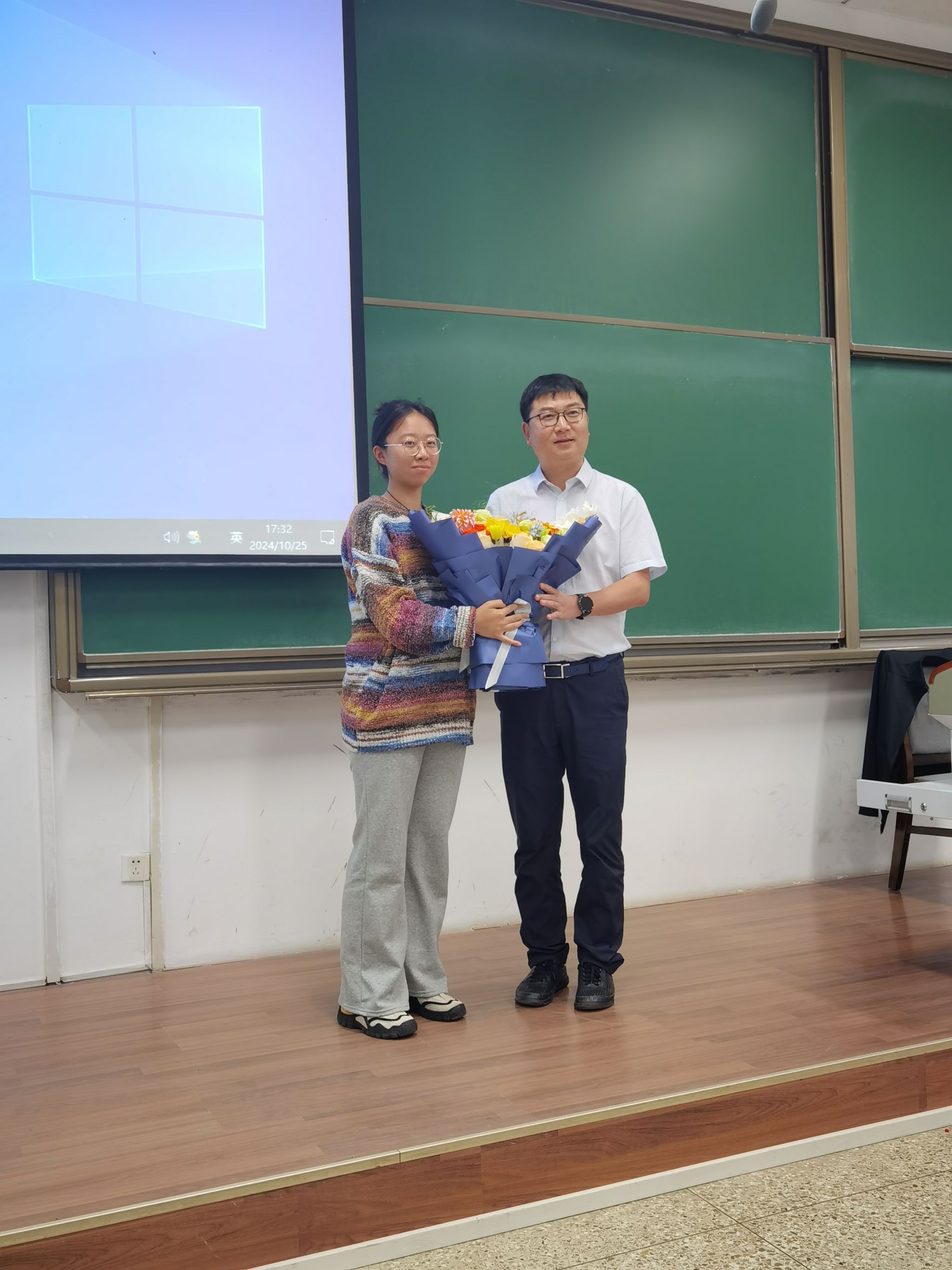 讲座结束后,在场的同学们踊跃提问,李建峰对大家关心的科研成果转化、人生成长轨迹、人才培养改革等问题进行了详细解答。整场讲座气氛热烈,掌声不断。最后,学生代表为李建峰献花,表达诚挚感谢。