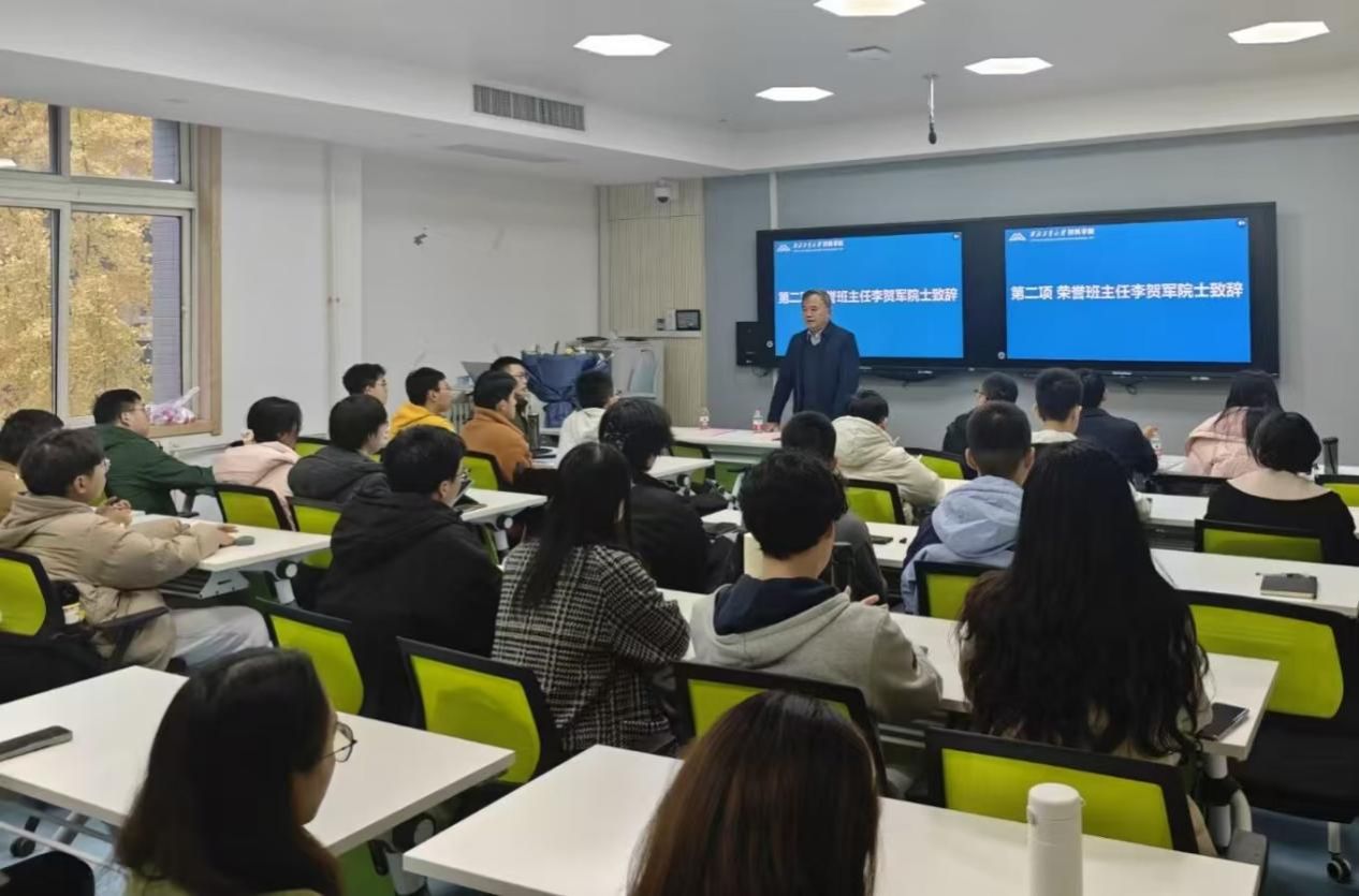 李贺军院士在致辞中指出,材料学科对科技发展和国防建设具有基础性和战略性重要意义,一代代新材料方能支撑一代代新装备。作为铸剑班学员要立大志向、上大舞台、入主战场,要刻苦认真,做到学业基础扎实、树立远大目标和始终意志坚定,管控好自己,同时养成锻炼的好习惯,真正成为为国家和民族做出贡献的“大总师”。