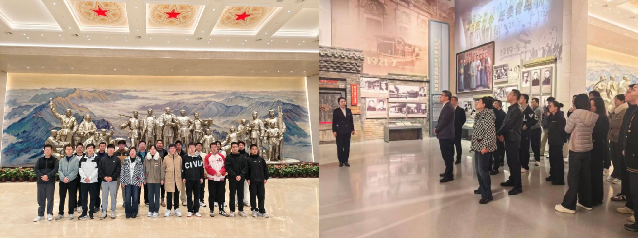 大家依次参观了“烽火关中”“照金星火”“三秦新篇”等展区。展厅内的珍贵文物、历史影像与复原场景生动再现了革命先烈为民族独立和人民解放英勇奋斗的壮阔历程。在讲解员引导下,大家聆听先烈事迹,追寻奋斗足迹,深刻感受革命精神的伟大力量。通过学习革命先辈的坚定理想信念与无私奉献精神,大家对共产党人的初心使命有了更加深刻的感受和理解。