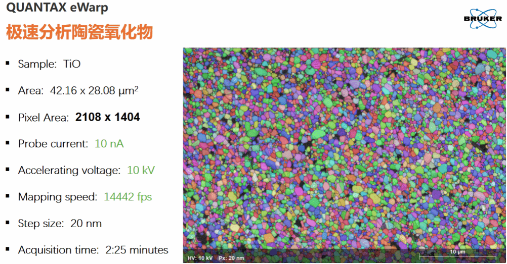 直接电子探测EBSD-eWARP的出现让您的每一次EBSD分析都无需妥协空间分辨率和分析时间,让10kV下用20nm步长的极限分析条件成为日常,让样品的细节展露无遗。