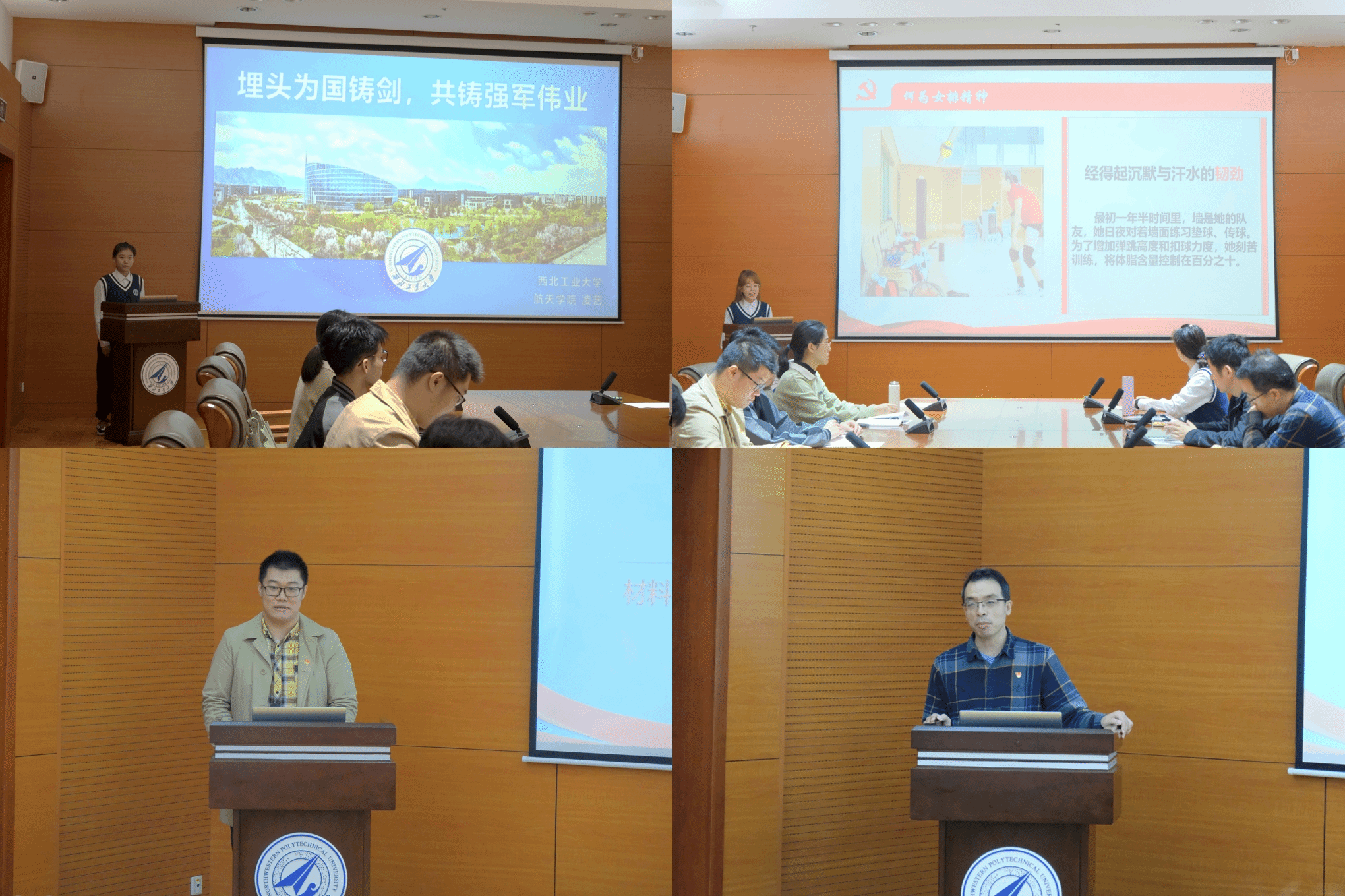 会上,凌艺和张嘉芯两位讲师分别以《埋头为国铸剑,共筑强军伟业》和《执青春之笔,绘中国精神》为题作了专题学习宣讲。他们从不同角度切入,满怀激情地向同学们讲述了西北工业大学在扎根西部、献身国防的建设历程中,始终坚持科技创新、铸就国之重器,始终坚持与时俱进、担当时代大任的故事。他们还详细介绍了学校形成的“总师型”人才培养模式和为党和国家事业发展做出的重要贡献。