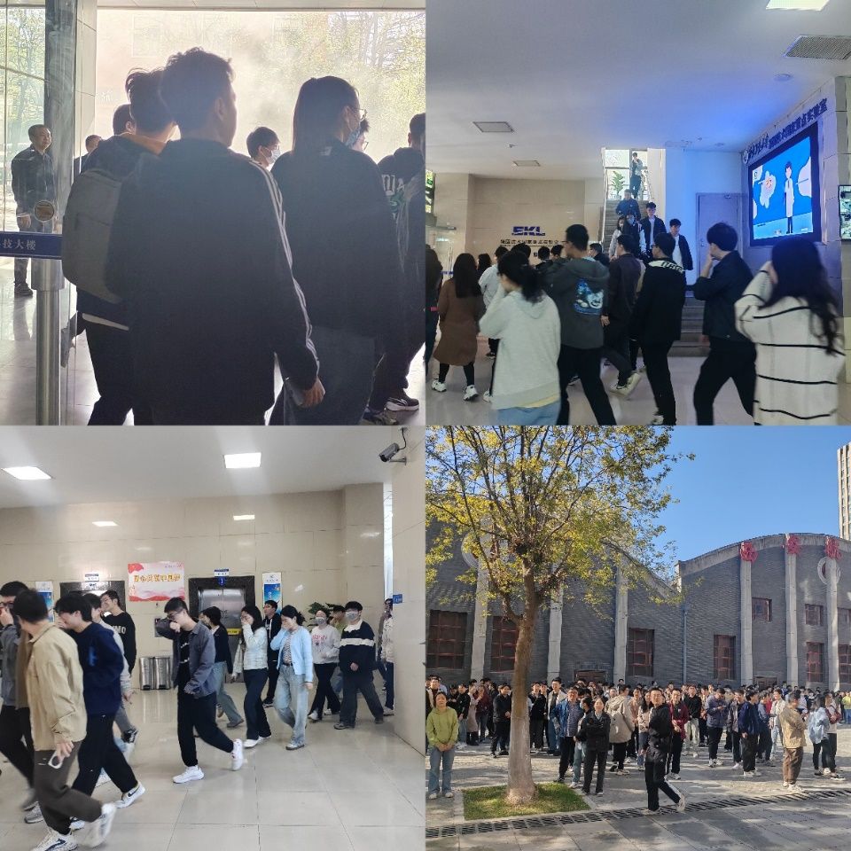 副院长苏海军,院长助理杨勇及各实验室负责人、学院师生共计600余人参加了此次活动。学校保卫处消防科胡涛老师受邀进行消防演练指导。