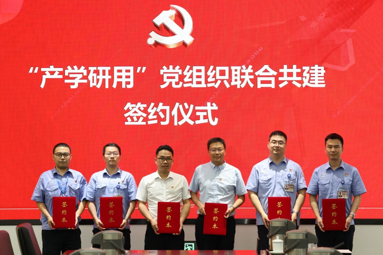 马克宣读了《产学研用党组织联合共建协议》,在全体参会人员的见证下,参加共建的六家党委书记签订党组织联合共建协议书并合影留念。