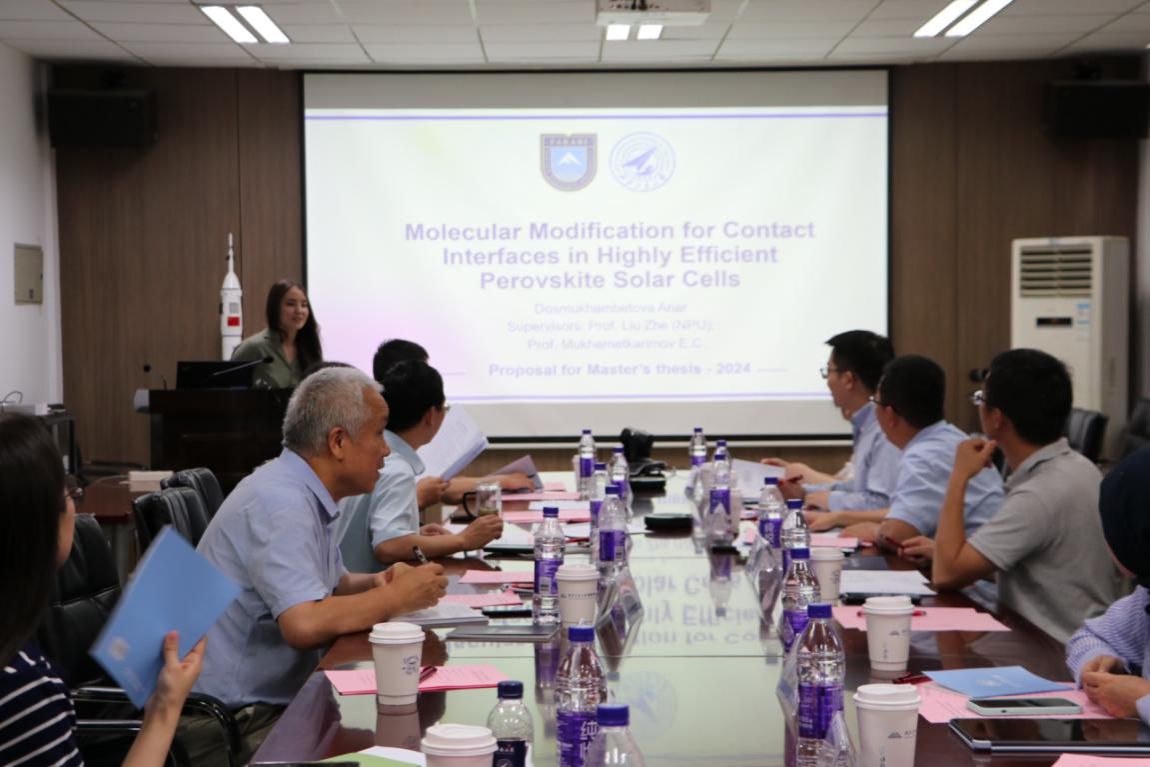 哈萨克斯分校表示欢迎,同时对学生未来在西工大的学习给予期冀。开题学生对研究背景、目的、预期成果及可能面临的挑战进行了全面介绍。答辩小组老师分别从论文选题的可行性、创新性和存在的问题等方面进行了细致点评,对学生的研究内容给予了充分肯定,同时指导学生在如何改进研究方法、技术路线,实施方案等方面提出了意见和建议。