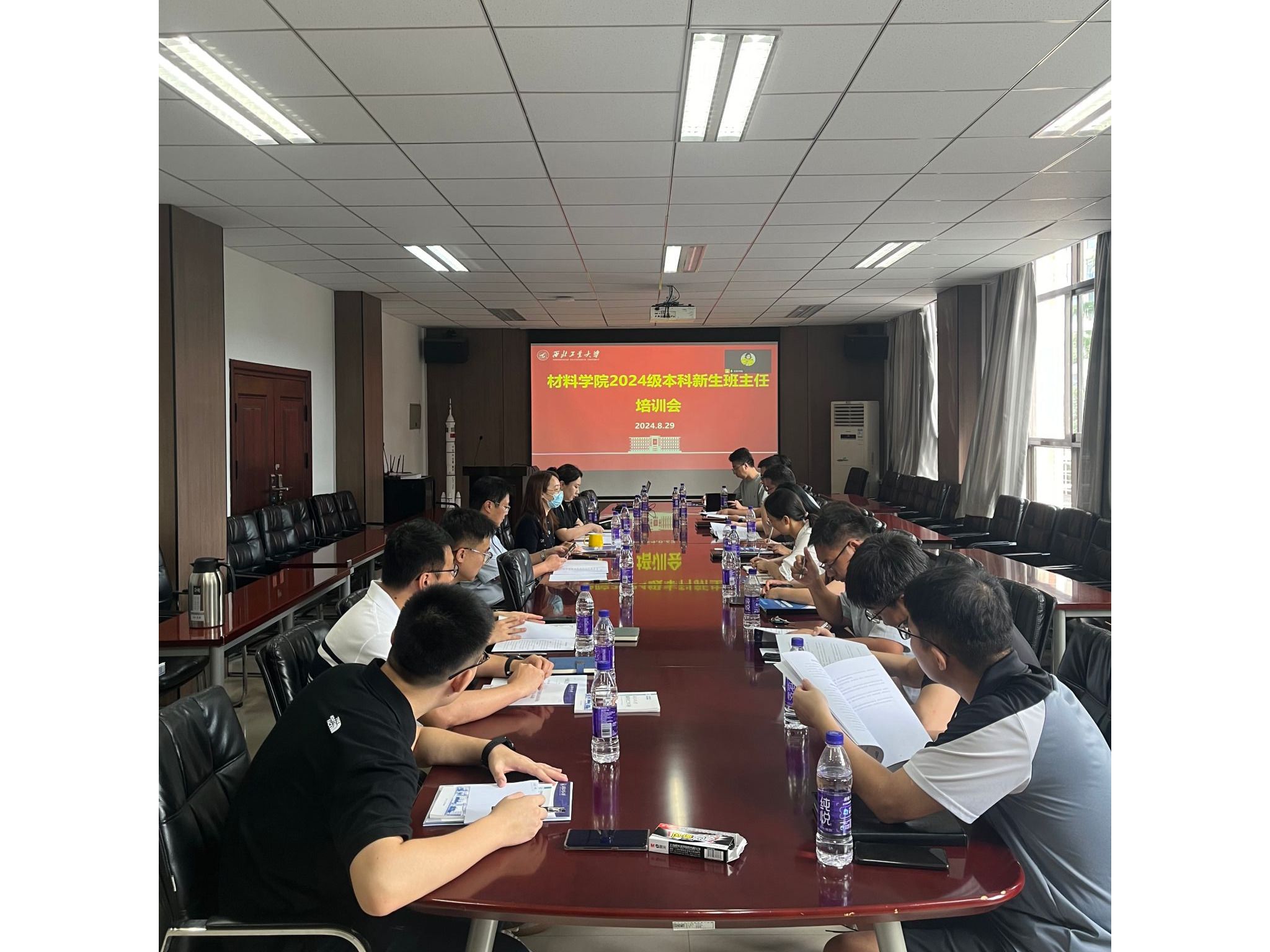 8月29日上午,材料学院召开2024级本科新生班主任及辅导员培训会。材料学院党委书记李恒、副院长罗皎、党委副书记禹亮以及全体新生班主任、辅导员参加会议。会议由罗皎主持。