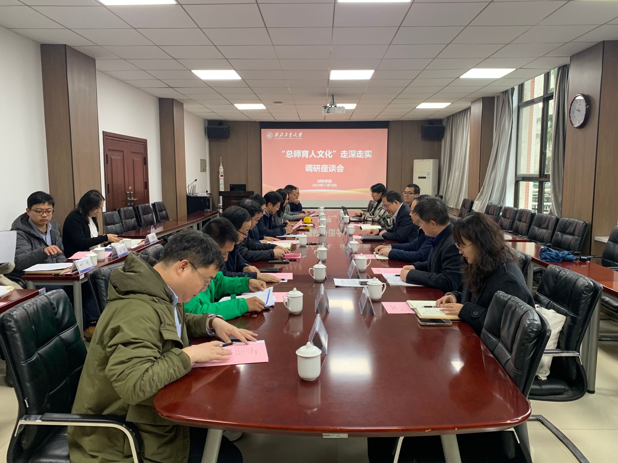 材料学院副院长罗皎汇报了学院现状及特色优势、学科建设情况、“总师育人文化”引领人才培养工作的特色做法及成效和下一步工作举措。与会人员围绕“总师育人文化”如何走深走实进行了交流研讨。