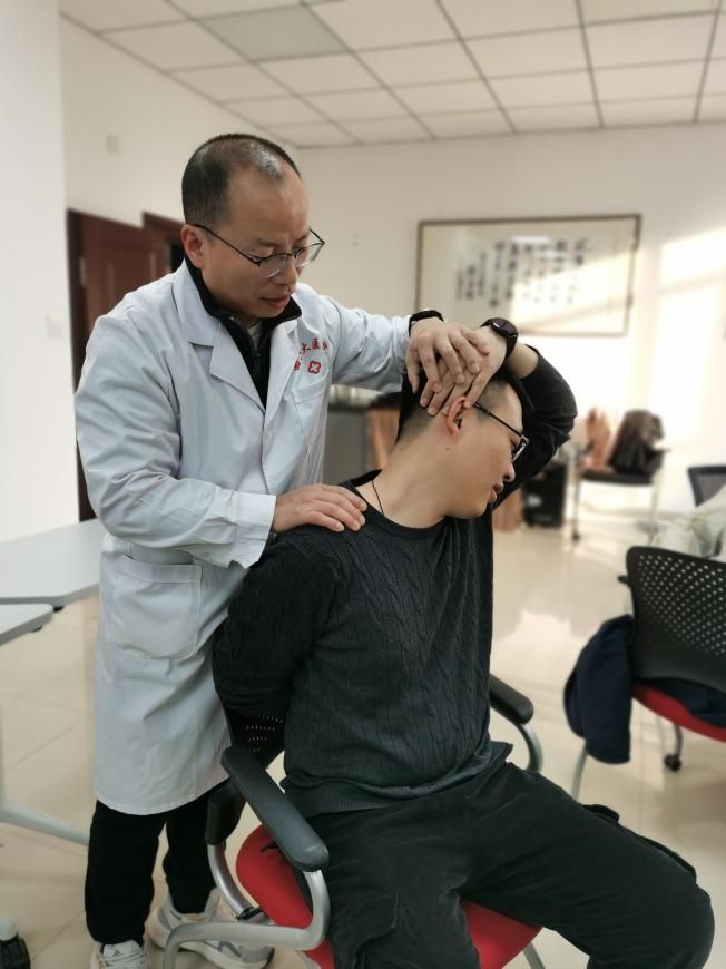 在颈椎病健康讲座环节,王国强从颈椎病的类型、病因、预防等方面为大家进行了深入浅出的讲解,并带领师生学习了“预防颈椎病自我按摩操”,现场气氛活跃。