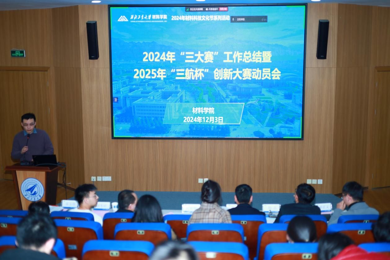 12月3日,材料学院举办2024“三大赛”工作总结暨2025年“三航杯”创新大赛动员会。材料学院院长付前刚,党委副书记禹亮,院长助理、团委书记孙磊,“三大赛”获奖项目负责学生和指导教师代表及学院师生参加会议。会议由学院辅导员张玉台主持。
