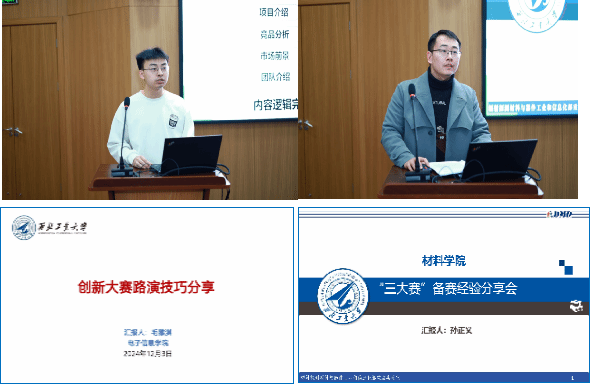 在经验分享环节,创新大赛高教主赛道项目“金研智形”负责人贾车旺、产业命题赛道项目“星基航空管制系统设计”负责人毛雅淇、“挑战杯”“秦创原”创新挑战赛项目“核安慧眼”负责人孙正义,分别介绍了参加“三大赛”的收获和体会。贾车旺表示,通过参赛,学科认知、产业应用、逻辑思维、组织能力和表达能力都有了显著提升。孙正义认为,一个好的项目找好切入点、抓住痛点至关重要。电子信息学院毛雅淇针对产业命题赛道特点,强调要针对命题本身提出技术升级方案,获得企业认可。