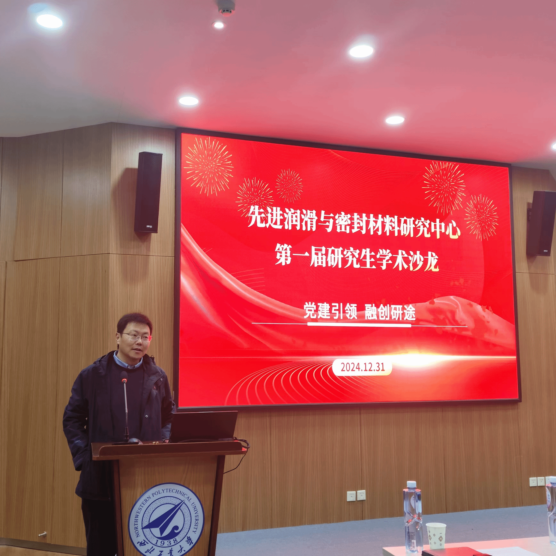 2024年12月31日,材料学院先进润滑与密封材料研究中心举办第一届研究生学术沙龙。材料学院党委书记李恒、院长助理杨勇和润滑中心师生共同出席会议。会议开幕式由叶谦副教授主持。