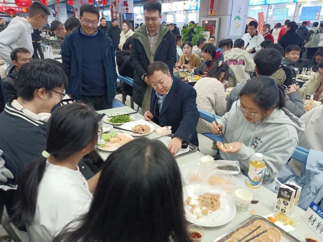 饺子是象征团圆与幸福的传统美食,承载着师生们对过往的深情回忆和对未来的美好期许。2024年12月31日,长安校区的同学们举办温馨欢乐的“庆元旦,迎新年”师生团圆包饺子活动。校党委书记、中国工程院院士李言荣、中国科学院院士黄维、副校长侯成义来到同学们中间,向大家送上新年祝福,与同学们一同包饺子、话家常,亲切询问大家的学习和身体情况,勉励大家珍惜校园时光,努力成长为全面发展的“总师型”人才。活动现场热闹非凡,欢声笑语回荡在整个食堂。材料学院党委书记李恒、党委副书记禹亮、辅导员张玉台和教师代表马俊也参加了活动。