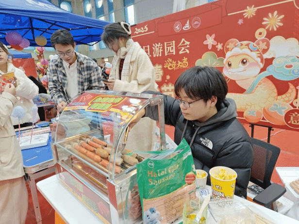 1月1日,学院在长安校区翱翔体育馆副馆举办元旦嘉年华活动。猜灯谜、自制手串、黑箱摸宝、迷你冰壶等趣味游戏轮番上演,活动内容丰富、形式多样,吸引了众多同学热情参与。猜灯谜环节引得同学们有的驻足凝思,有的热烈讨论。自制手串活动则让同学们亲手挑选材料、编织手链,每一件作品都蕴含着新年的美好祝愿和独特的个人印记。