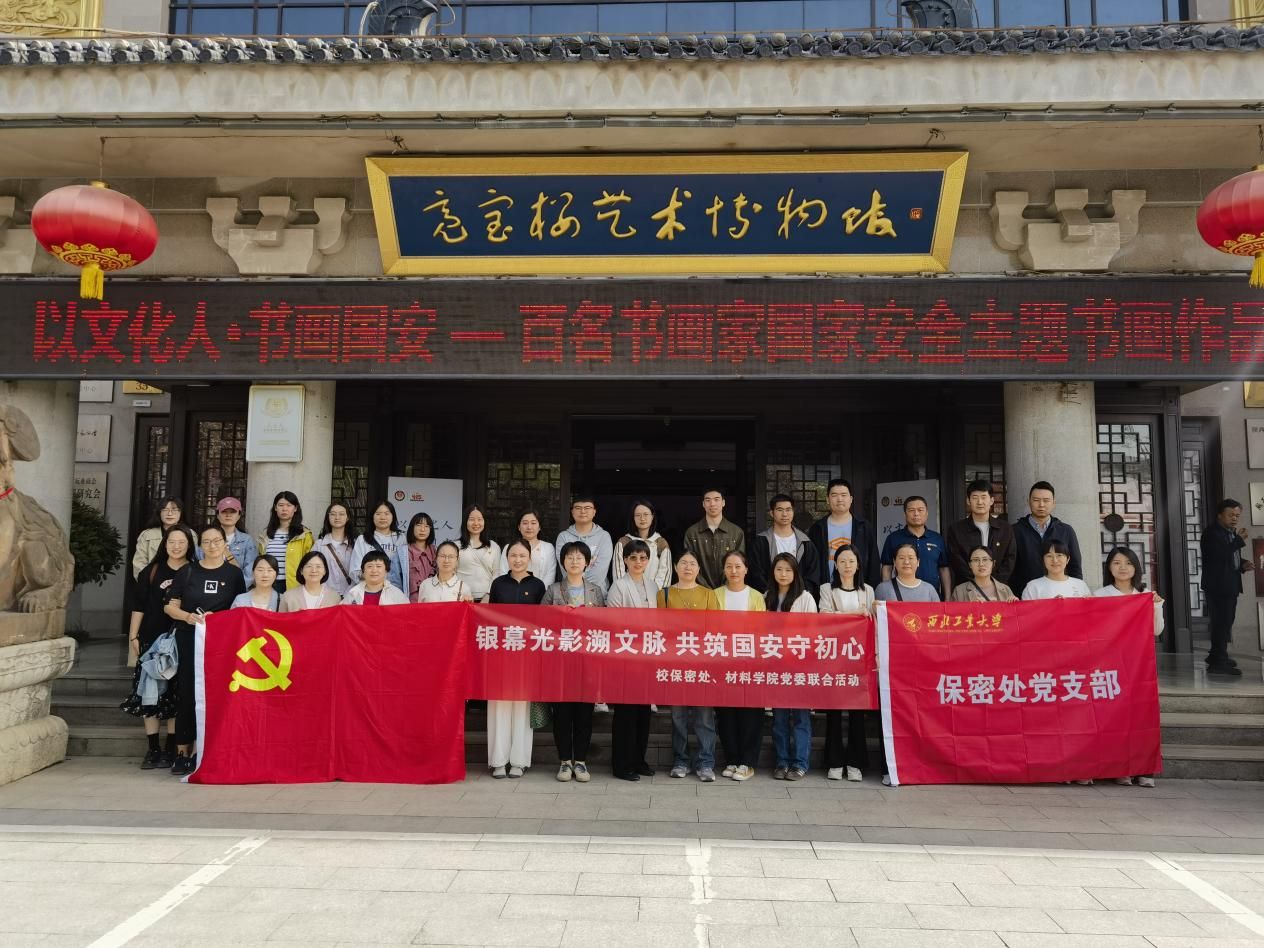 4月10日,在第十个全民国家安全教育日来临之际,西北工业大学材料学院联合校保密处,以“银幕光影塑文脉,共筑国安守初心”为主题,组织师生党员赴西影电影博物馆、“以文化人 书画国安——百名书画家国家安全主题书画作品展”开展党日活动共建,通过沉浸式参展、观影在艺术与历史的交融中深化国家安全意识,筑牢思想防线。
