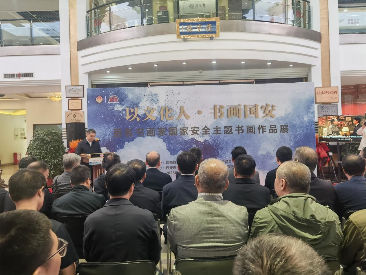 由陕西省国家安全厅、西安市文学艺术界联合会主办的“以文化人 书画国安”——百名书画家国家安全主题书画作品展,通过百余幅作品系统展示十年来全民国家安全教育取得的突出成效,展现陕西省国家安全机关坚定履行隐蔽战线职责使命,胸怀“国之大者”,维护国家安全的良好精神风貌,教育广大群众深刻认识当前国家安全面临的严峻复杂形势,切实增强国家安全意识和素养,进一步推动形成全社会共同维护国家安全的强大合力。