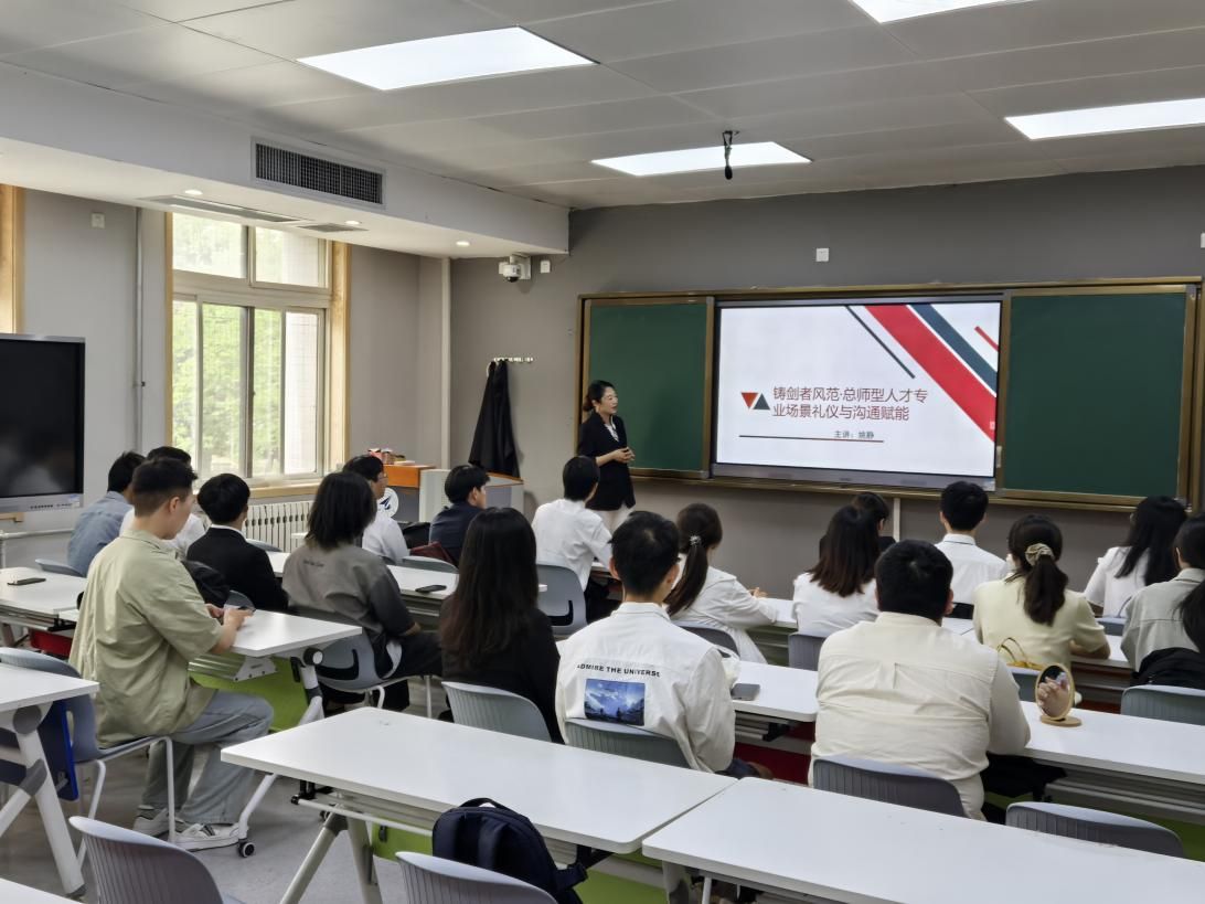 5月17日,材料学院邀请十四运会颁奖礼仪专业培训教师姚静副教授,为铸剑6班同学们讲授“铸剑者风范•总师型人才专业场景礼仪与沟通赋能”培训课,班级辅导员冯婷婷主持活动。