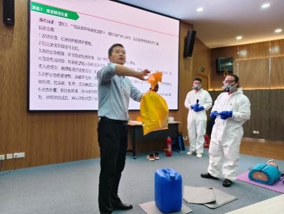 学院结合“20L甲醇起火”“500ml乙醚起火”“有机废液桶倾倒泄漏”“实验人员误操作触电”等场景开展了“实战演练”,全面检验了学院师生的应急处置能力。