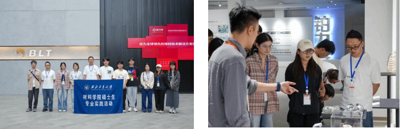 在铂力特技术人员的带领下,同学们了解了企业从实验室探索到产业化突破,再到2019年成功登陆科创板的奋斗历程,感受了在金属增材制造技术装备研发、工艺革新与产品应用上的重大突破,体验了完整的生产流程。当听到“始终以技术创新回应国家制造升级需求”的企业定位时,大家对“产学研用协同育人”的内涵有了更具象的理解,校企同频共振、共促科技发展的使命感悄然生根。
