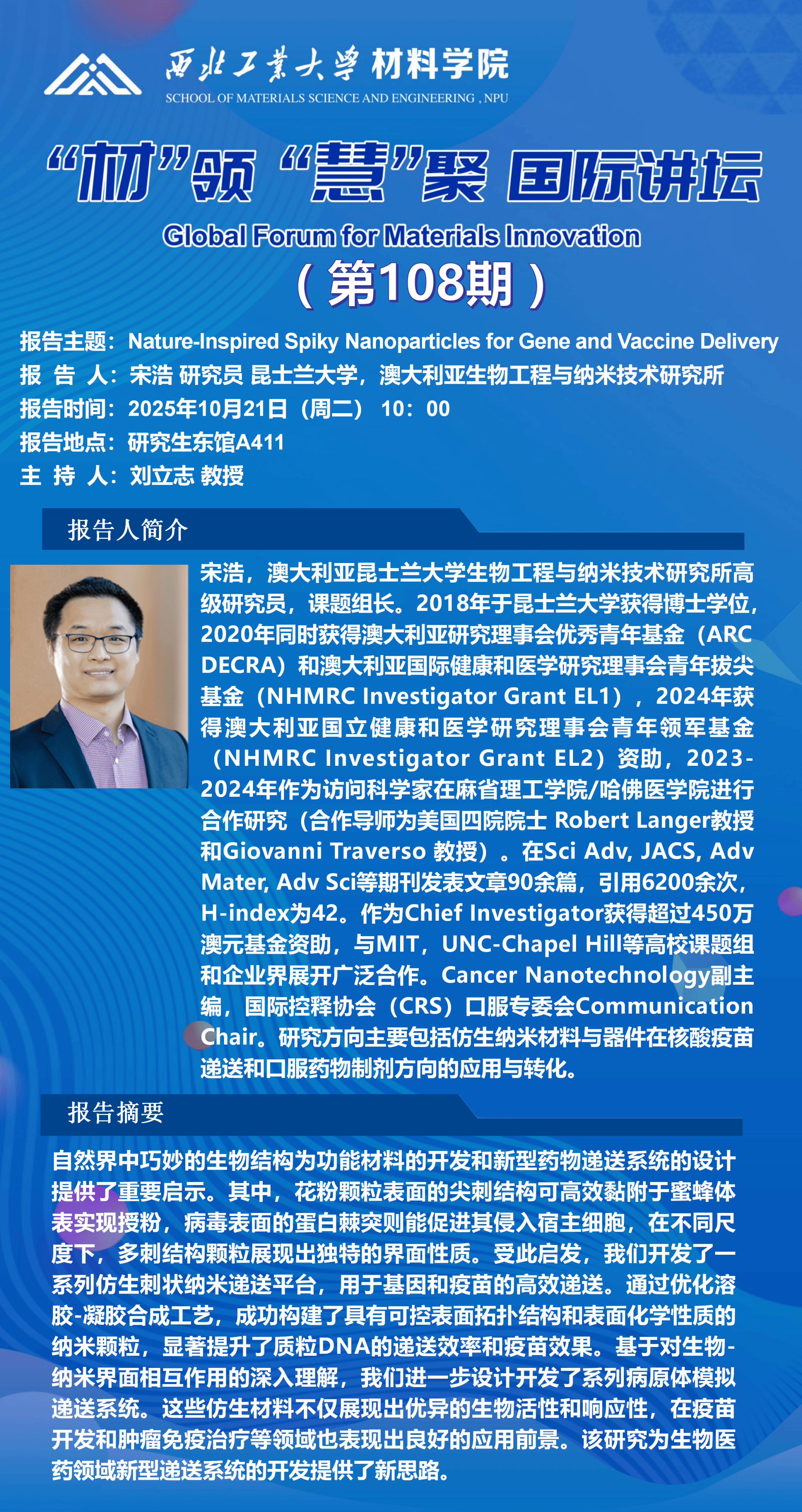 主题:Nature-Inspired Spiky Nanoparticles for Gene and Vaccine Delivery