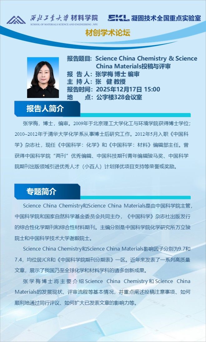 报告题目:Science China Chemistry & ScienceChina Materials投稿与评审