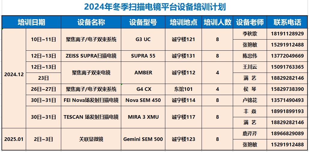 5、本次所有设备培训报名截止时间为2024年12月10日17:00,其它未尽事宜请联系中心办公室029-88493450(曹老师)。