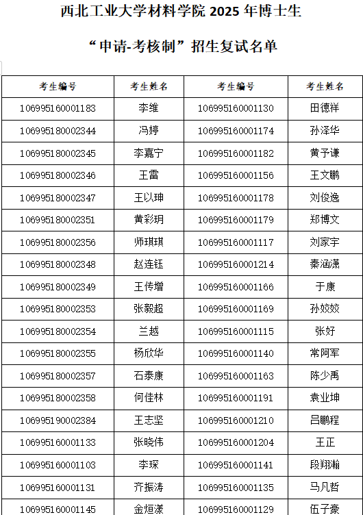 西北工业大学材料学院 2025年博士研究生复试工作方案