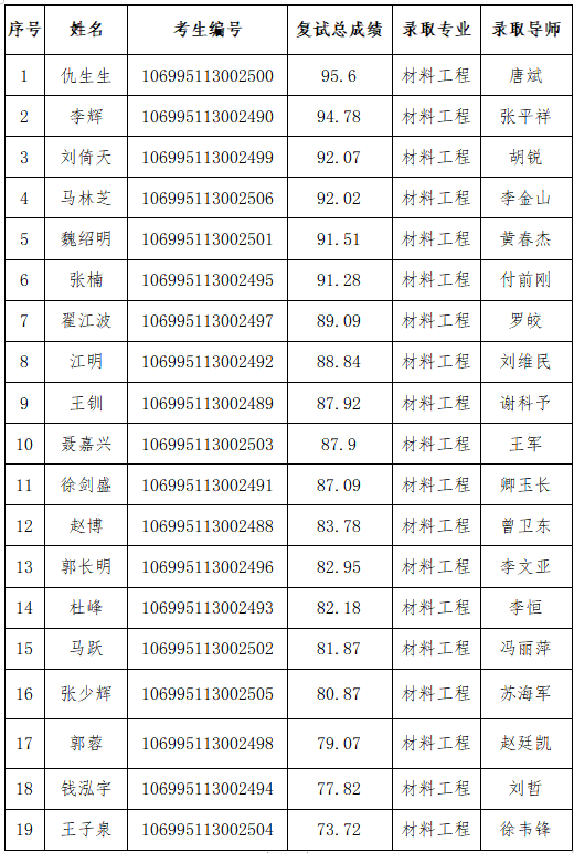 根据《材料学院2025年定向工程博士研究生复试工作方案》,现将拟录取名单予以公示,公示期自2025年6月12日至6月19日。