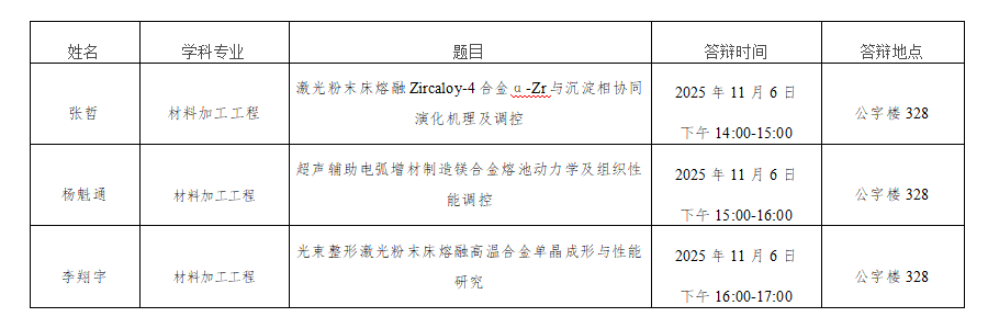 为深入推进学术型博士研究生培养机制改革,完善博士生考核机制,加强博士生培养过程管理,全面提高博士生培养质量,按照《西北工业大学学术型博士研究生培养过程管理实施细则》要求,将于2025年11月6日组织博士研究生开题公开答辩报告会,现将答辩安排公告如下:
